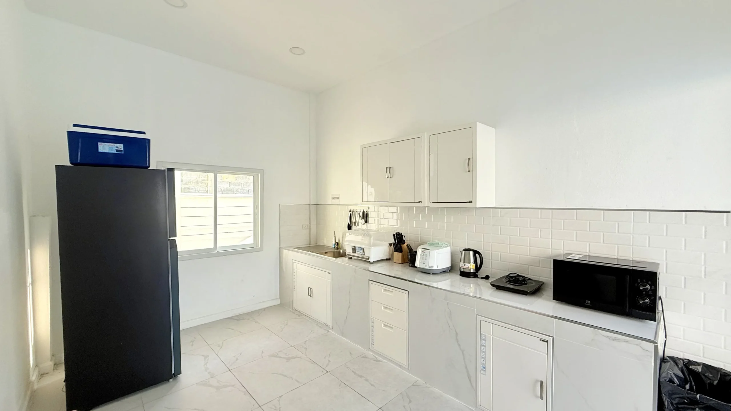 ✅ อุปกรณ์ครัวครบครัน (ตู้เย็น,ไมโครเวฟ,หม้อหุงข้าว,กาน้ำร้อน,เตาไฟฟ้า,จานชามช้อนส้อม)